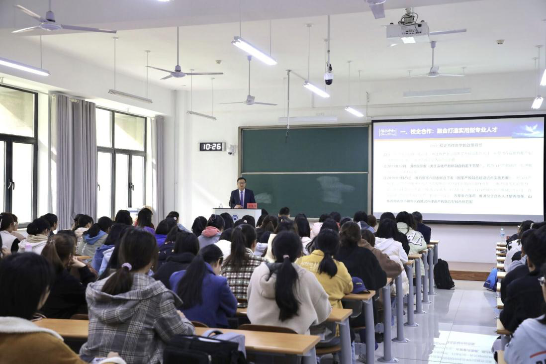郝先经首先感谢学校和学院给予信永中和会计事务所济南分部长期合作的机会,对同学们来到山财大探花视频 学习会计学这门专业表示祝贺。他围绕“专业成就未来“主题,分别从”校企合作“、”行业回眸”、“风雨兼程”、“未来寄语”四个方面与同学进行了深入探讨。