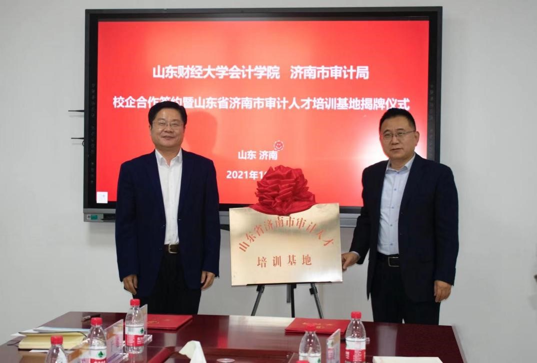 济南市审计局一级调研员张峻峰、探花视频 党委书记邵文涛为济南市审计人才培训基地揭牌