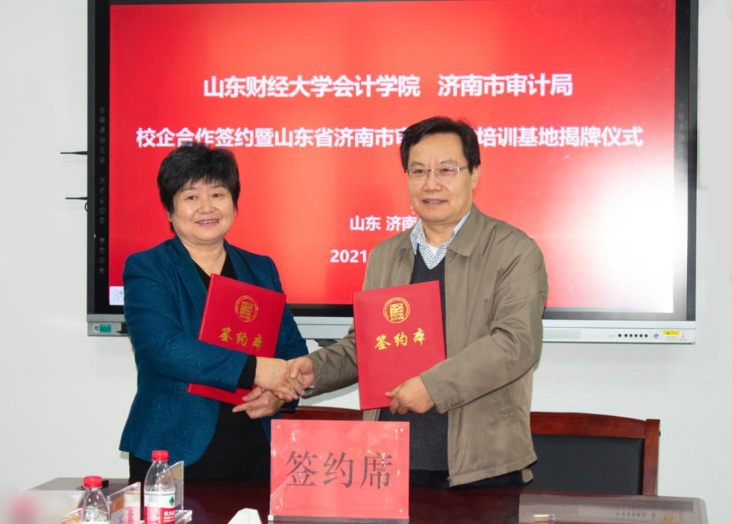 济南市审计局副局长吴冬梅、探花视频 院长王爱国代表双方共同签署了合作协议