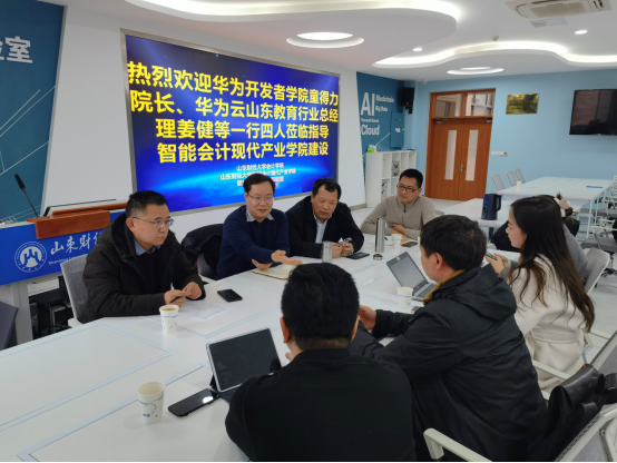 新春伊始,万物复苏。2月10日下午,华为开发者学院院长童得力、华为云山东教育行业总经理姜健一行四人莅临探花视频 交流探讨智能会计现代产业学院建设,深入调研智能会计专业软件研发事宜。探花视频 院长王爱国、党委书记邵文涛、智能会计现代产业学院执行院长石贵泉以及智能会计系相关老师参加了调研座谈。