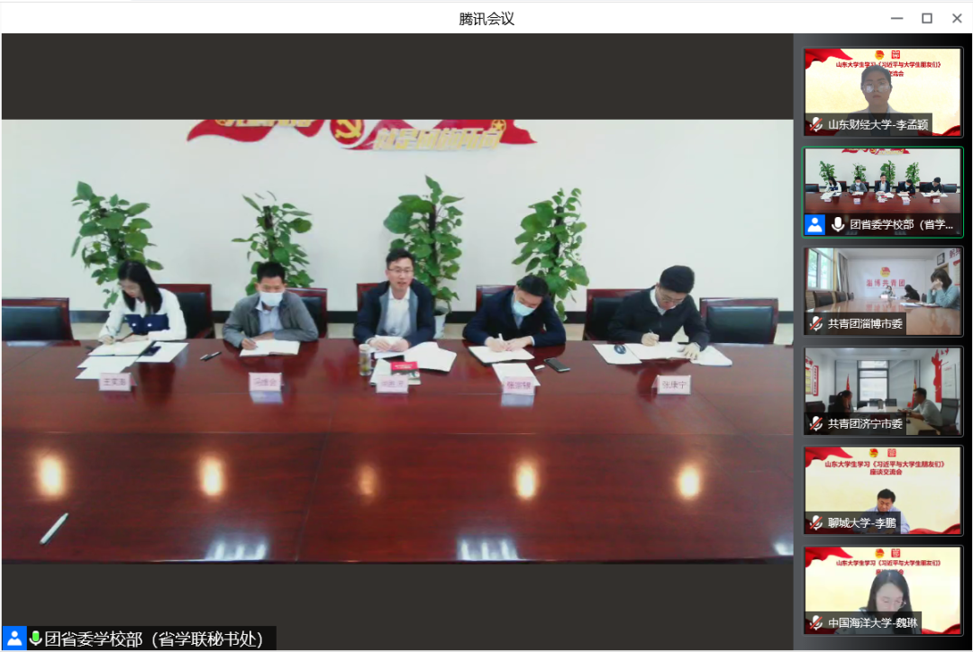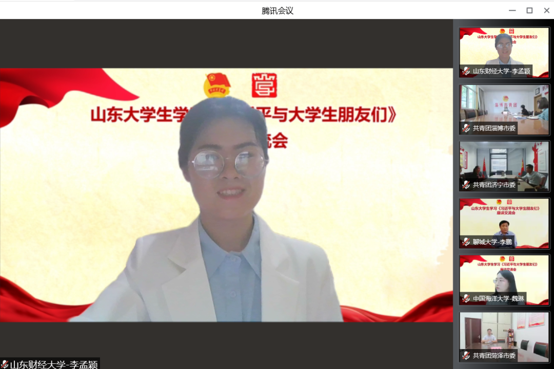 4月27日,团省委召开山东大学生学习《习近平与大学生朋友们》线上座谈交流会。团省委副书记尚胜波同志出席会议并讲话。我校第23届研究生支教团队长、探花视频 2021级研究生李孟颖代表我校作了交流发言,向全省青年分享了学习成果与体会。