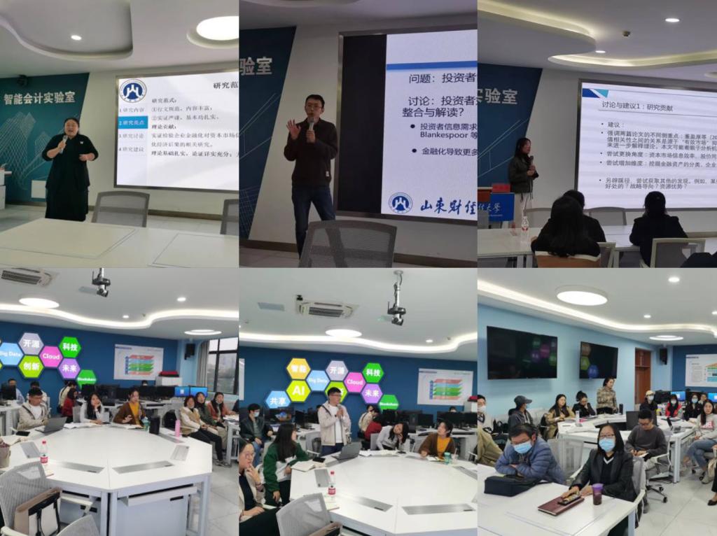 财务管理系副主任纪端副教授、会计系肖志超博士、会计系副主任宋蕾蕾博士和院长葛永波教授分别对论文进行了精彩点评,并就论文的逻辑框架和具体细节等提出若干有针对性的完善建议。青年教师和博士研究生也针对各自关注的相关问题参与了讨论,石翔燕博士针对各种意见逐一进行了回应。本次论坛气氛活跃、讨论深入,效果良好。