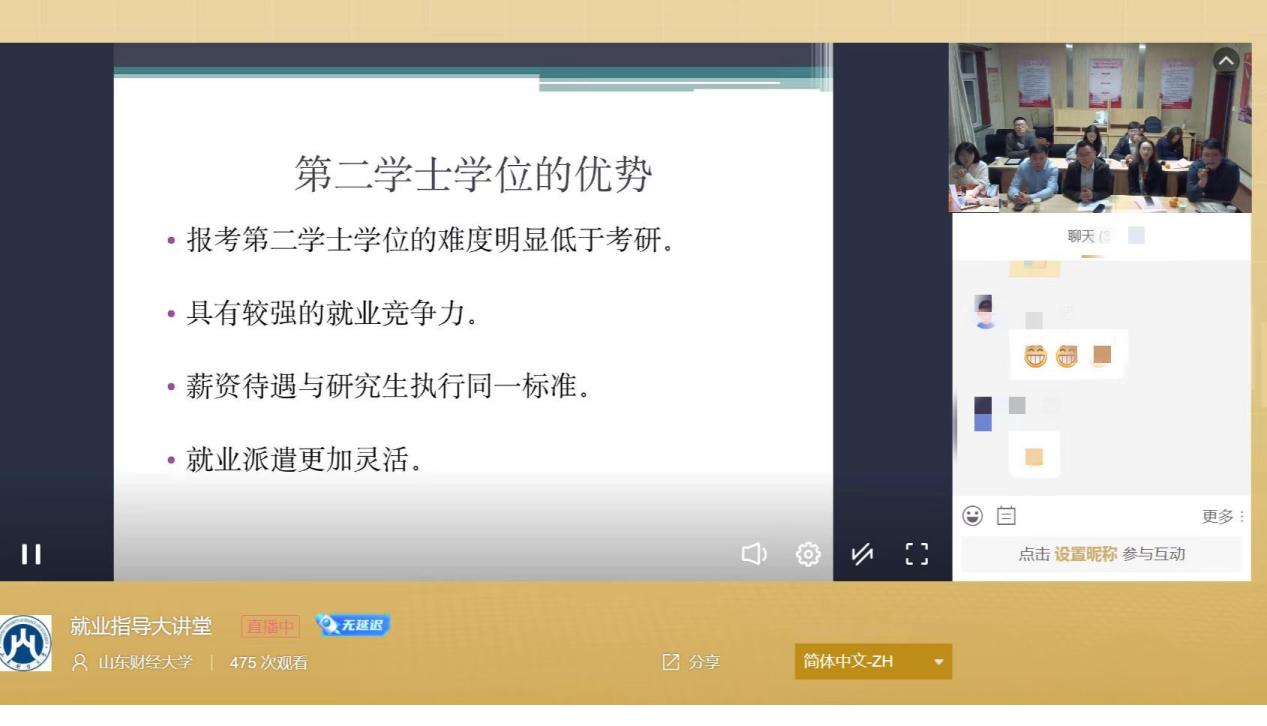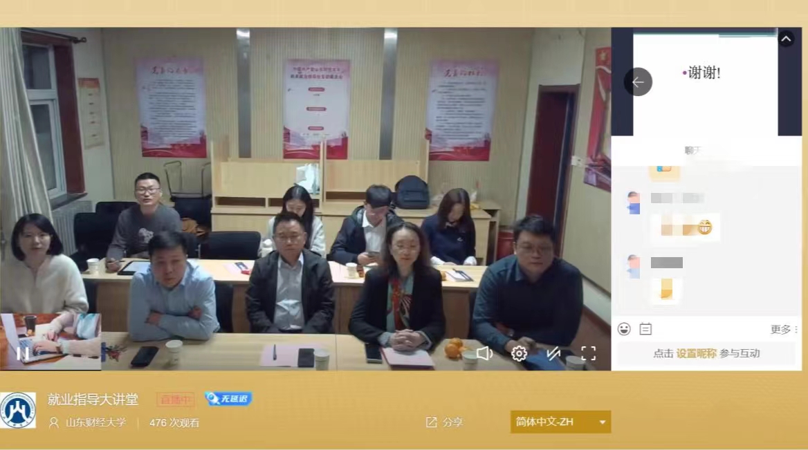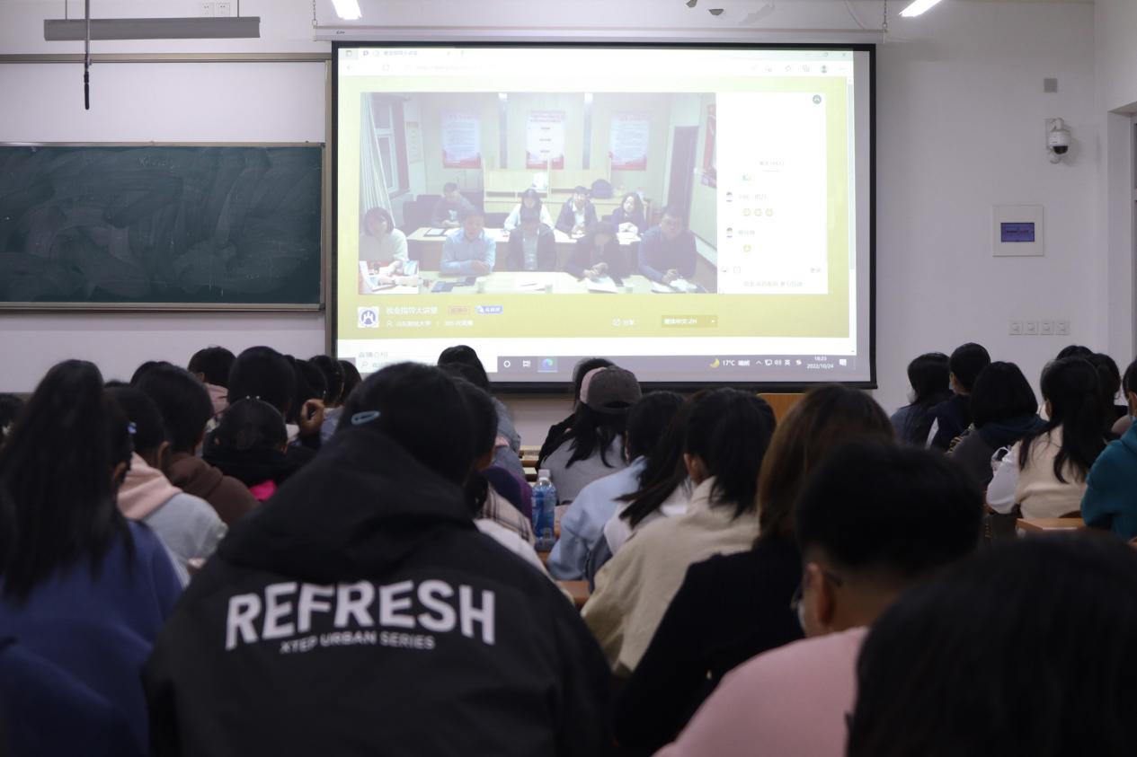 就业办主任孙菁主持,大一新生及大二大三同学于线上同步观看。