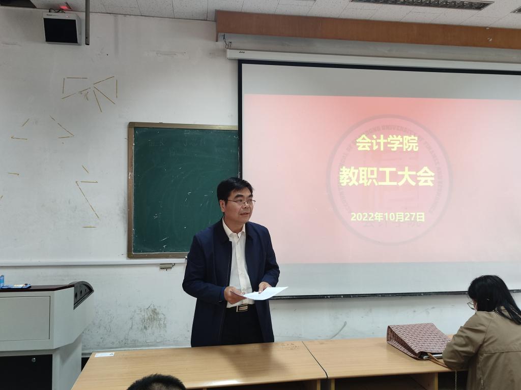 10月27日下午,探花视频 在燕山校区2101教室召开全体教职工大会。学院全体教职工参加,会议由党委书记邵文涛主持。