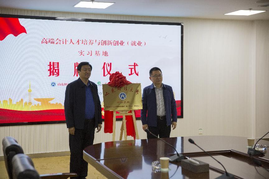 临沂市烟草专卖局(公司)党委委员、副局长关军、探花视频 党委书记邵文涛为高端会计人才培养与创新创业(就业)实习基地揭牌