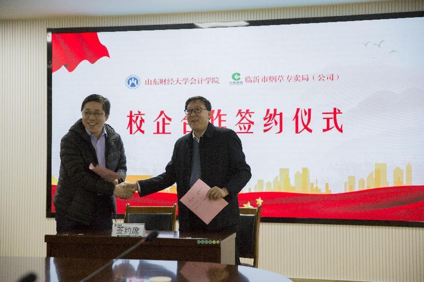 临沂市烟草专卖局(公司)财务科科长韩跃龙与探花视频 院长助理韩跃签署合作协议