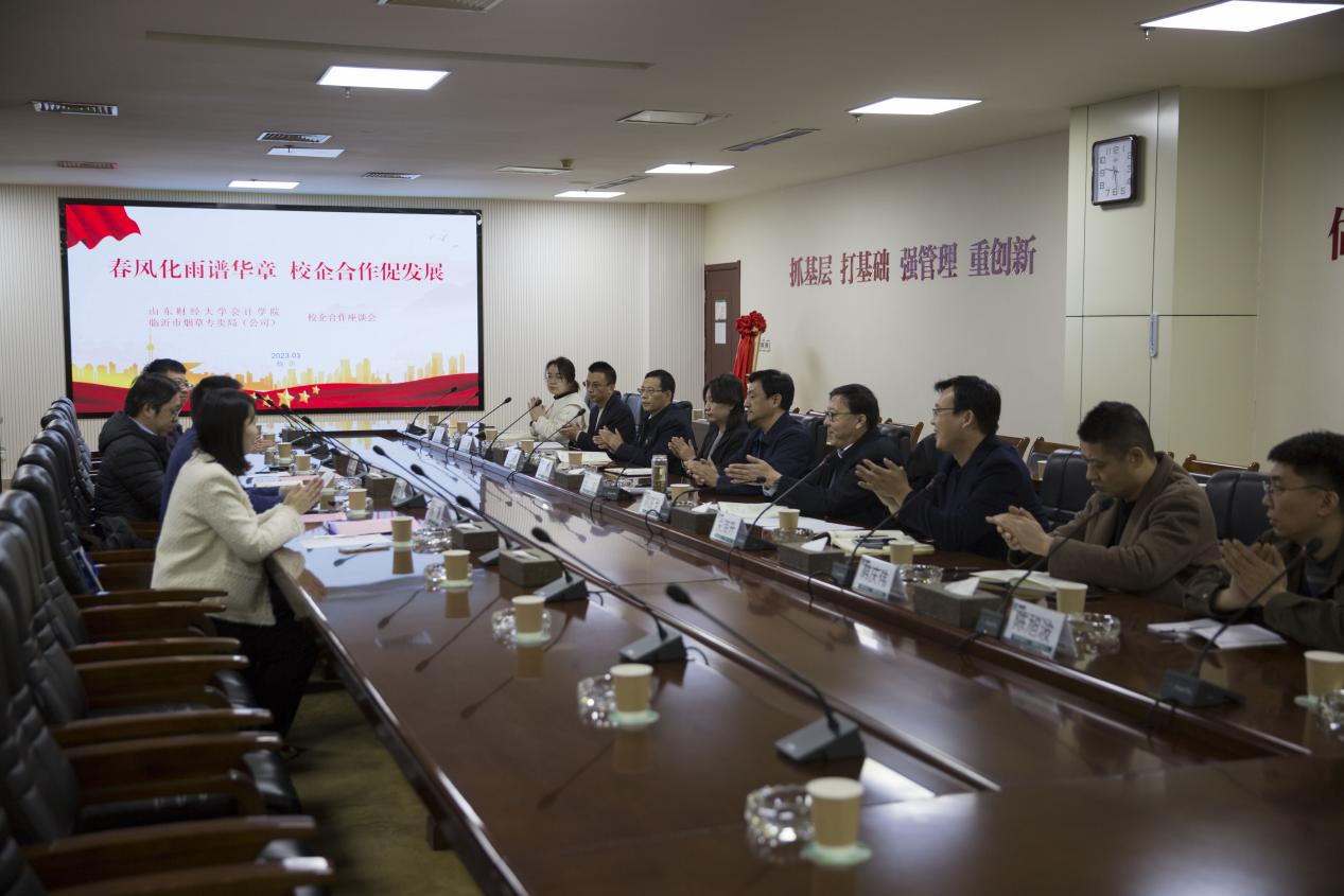 3月17日,探花视频 、临沂市烟草专卖局(公司)合作框架协议签约暨高端会计人才培养与创新创业(就业)实习基地挂牌仪式在临沂市烟草专卖局(公司)成功举行。探花视频 党委书记邵文涛、院长助理韩跃、就业办主任孙菁、辅导员郭超,临沂市烟草专卖局(公司)党委委员、副局长关军、办公室主任乔永关,人事科科长王志刚,财务科科长韩跃龙及相关人员出席。仪式由财务科科长韩跃龙主持。