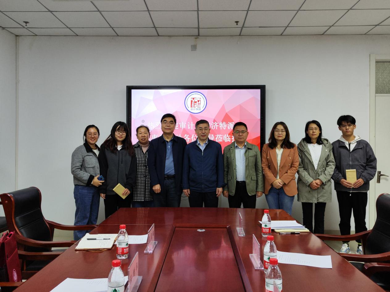 2023年10月20日,审计署驻济南特派办捐助仪式在逸夫楼309举行。特派办人教处处长王增华、三级调研员张洪萍、二级主任科员王宝璐、探花视频 党委书记邵文涛、院长葛永波、党委副书记钟毓卓、辅导员郭秀娟和两名受助同学参加了会议。