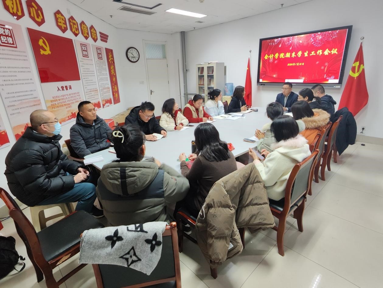 1月16日,学院召开期末学生工作会议,党委书记邵文涛、副书记郑大伟和全体辅导员参加。会议由党委副书记钟毓卓主持。