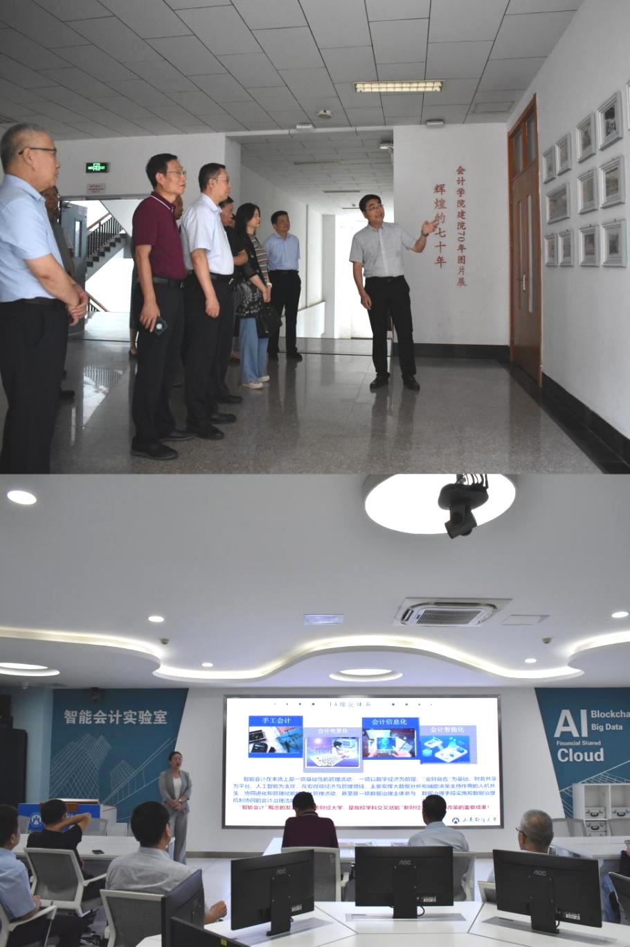 开幕式后,评估专家组现场参观了学院智能会计实验室、红色会计展(思政教育基地)、研究生教室、自习室,并给予了充分的认可和称赞。