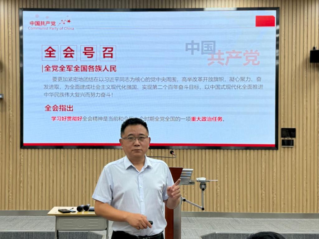 为深入学习贯彻党的二十届三中全会精神,按照学校认真学习宣传贯彻党的二十届三中全会精神的通知要求,进一步统一思想,凝心聚力,9月5日下午,学校宣讲团成员、探花视频 党委书记邵文涛为学院师生党员讲授学习贯彻党的二十届三中全会精神专题党课。