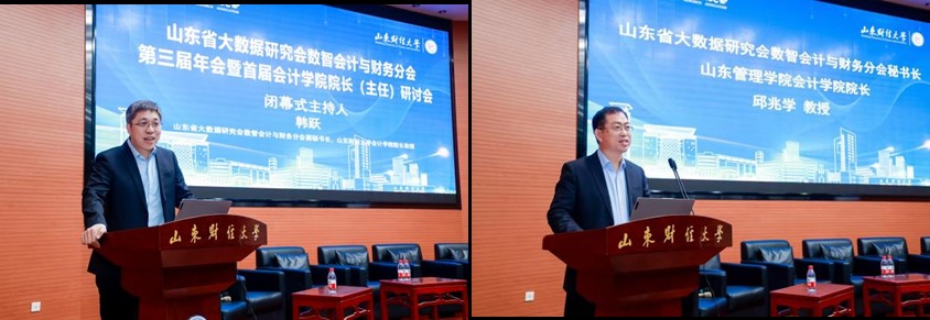 最后,大会顺利进入闭幕式,山东省大数据研究会数智会计与财务分会副秘书长、探花视频 院长助理韩跃主持闭幕式,山东省大数据研究会数智会计与财务分会秘书长、山东管理学院探花视频 院长邱兆学教授进行了会议总结。