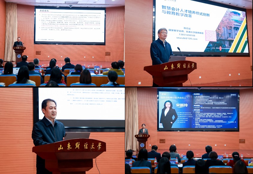 大会下半场主题报告由山东省大数据研究会数智会计与财务分会会长、山东大学中小企业研究所所长张玉明教授主持。数智教育发展(山东)有限公司总经理宋国荣先生阐述了人工智能赋能财务决策范式转变,信永中和会计师事务所审计技术合伙人宋振玲女士介绍了创新转型促进事务所高质量发展的相关内容。