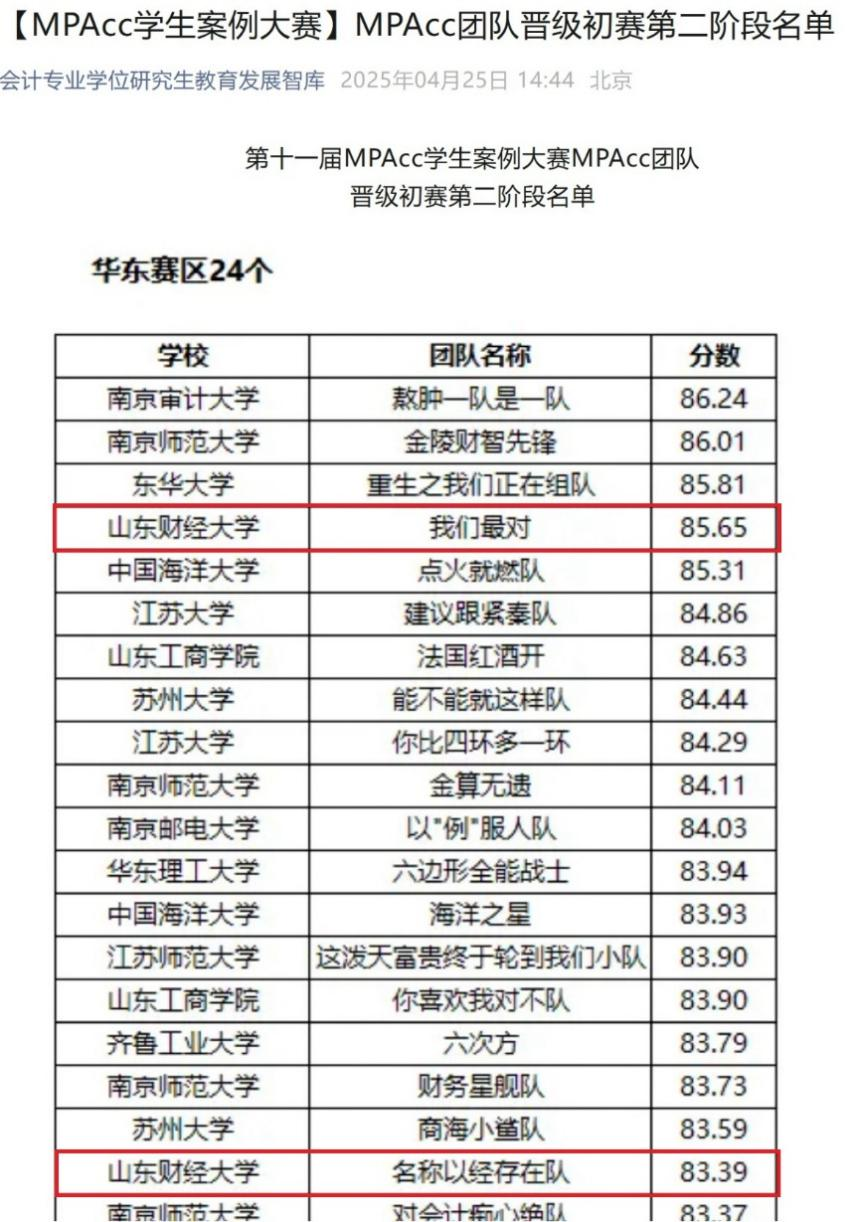 2025年第十一届全国MPAcc学生案例大赛第一阶段比赛于4月25日落下帷幕。经过激烈的角逐,探花视频 在第一阶段中共有2支研究生团队从华东赛区541个报名团队中脱颖而出,获得佳绩。
