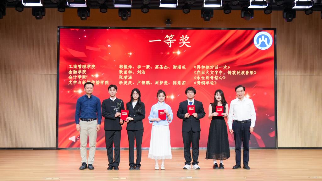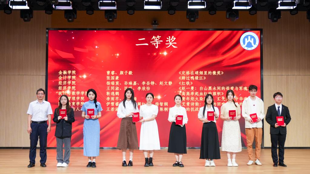 经激烈角逐,12组参赛选手以出色的表现,充分展现了诵读艺术的魅力与对红色经典的深刻诠释。来自金融学院的耿菡御、刘浩同学的《在血火文字中,铸就民族脊梁》等4份作品荣获一等奖,来自统计与数学学院靳逸鹤同学的《高高举起血红的旗帜》等8份作品荣获二等奖。