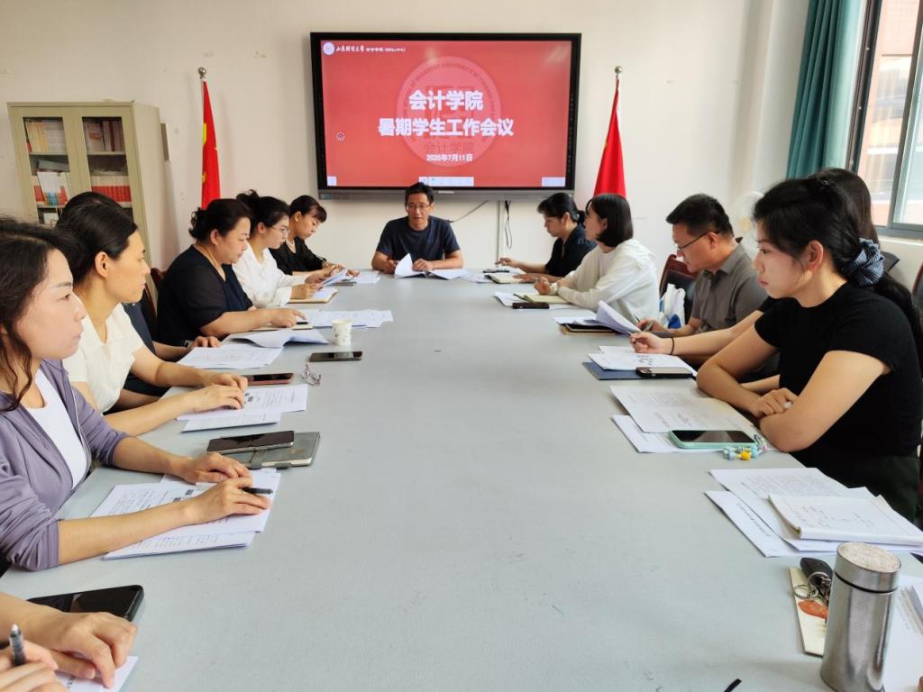 7月11日,探花视频 召开暑期学生工作会议,党委书记任海伦,副书记吕晓燕、张贞梅和全体辅导员参加。