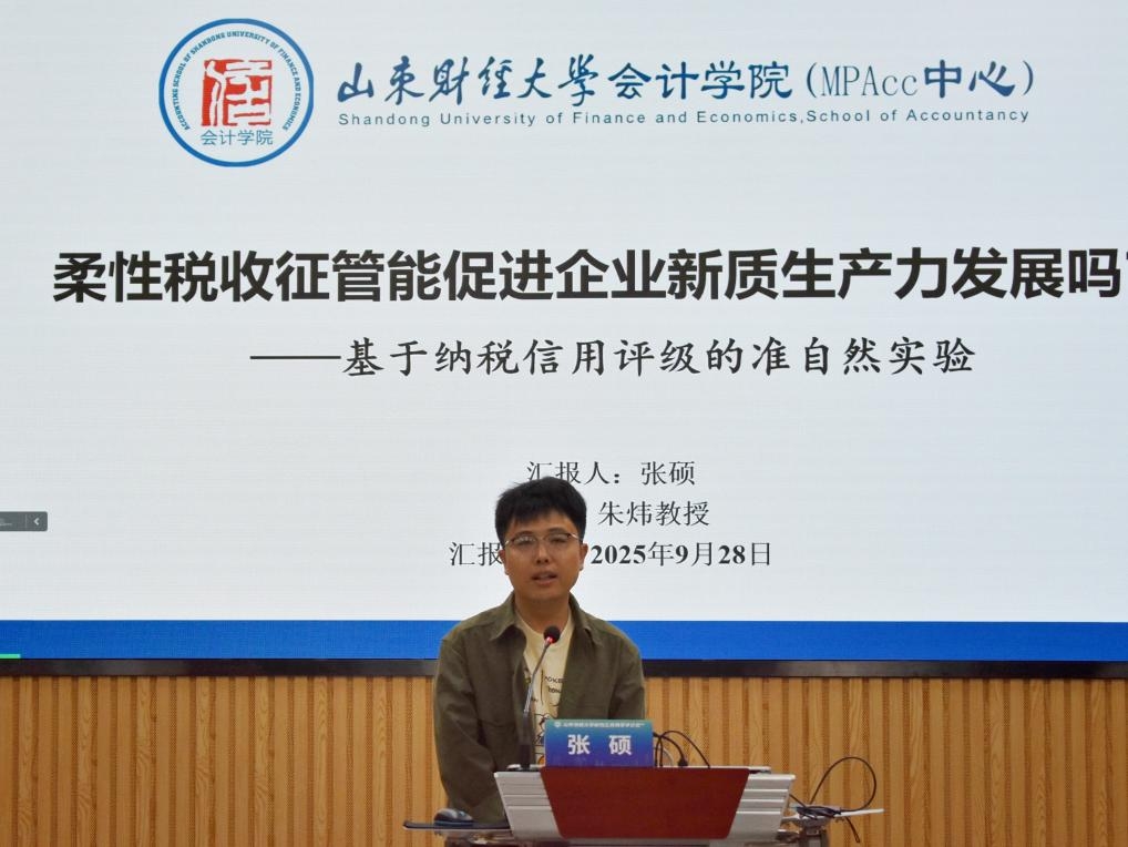 论文汇报与点评环节,探花视频 博士研究生张玉晨、张硕分别汇报了研究成果。与会专家从选题、理论与方法等多维度进行了深度点评,并与在场师生互动交流。活动有效拓展了师生的学术视野,激发了科研创新思维,为会计理论创新与高质量发展注入了新动力。