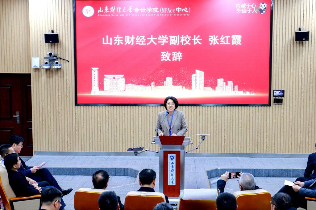 山东山审会计师事务所有限公司董事长郭法远作为校友代表发言。他回顾了在母校求学的经历,表示正是学校深厚的办学底蕴与创新的教学模式,奠定了扎实的专业根基与开阔的行业视野,使其逐步成长为勇于探索、追求卓越的业界实践者与开拓者。他感念母校的培育之恩,并表达了继续秉持财大精神,为学校、学院高质量发展贡献智慧与力量的决心。