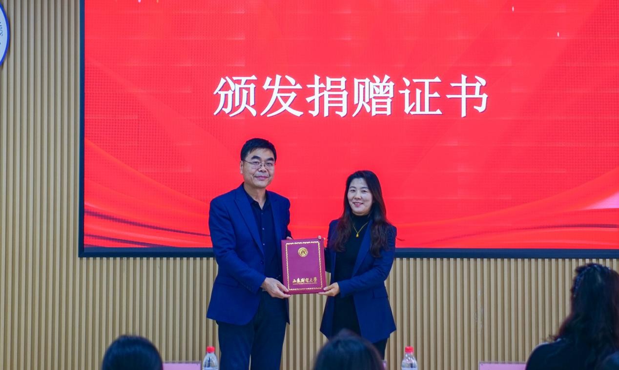 葛永波向山东大地公益慈善基金会颁发了捐赠证书。