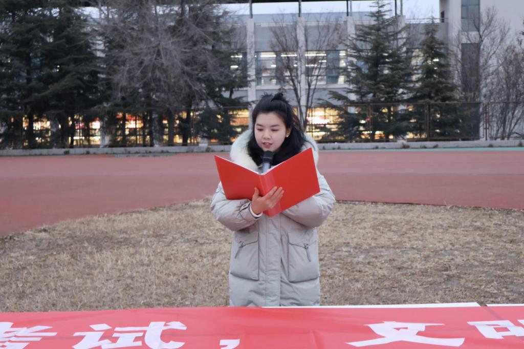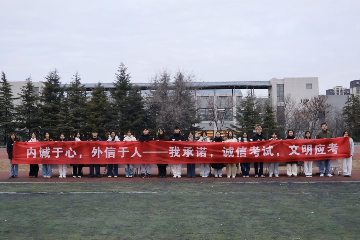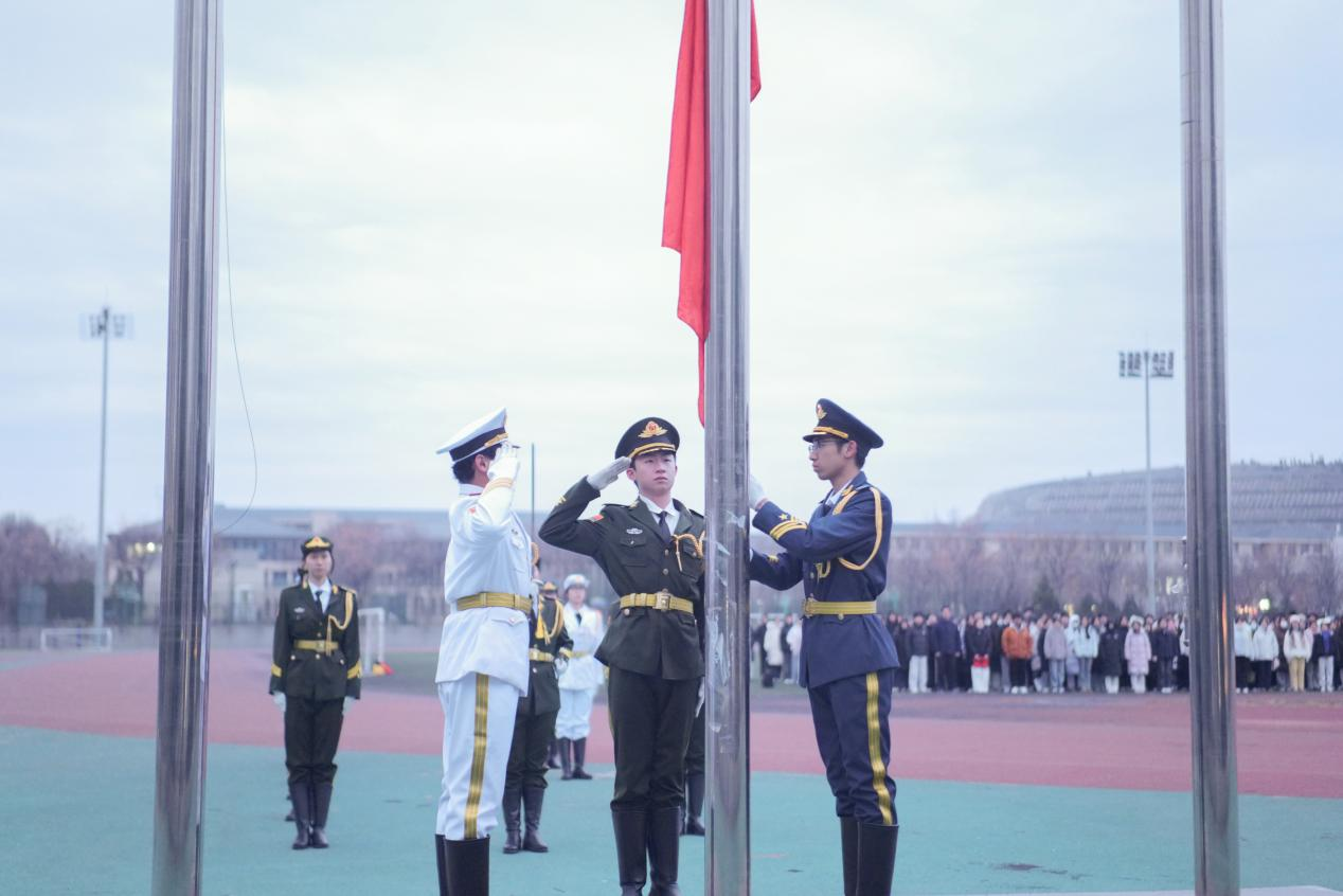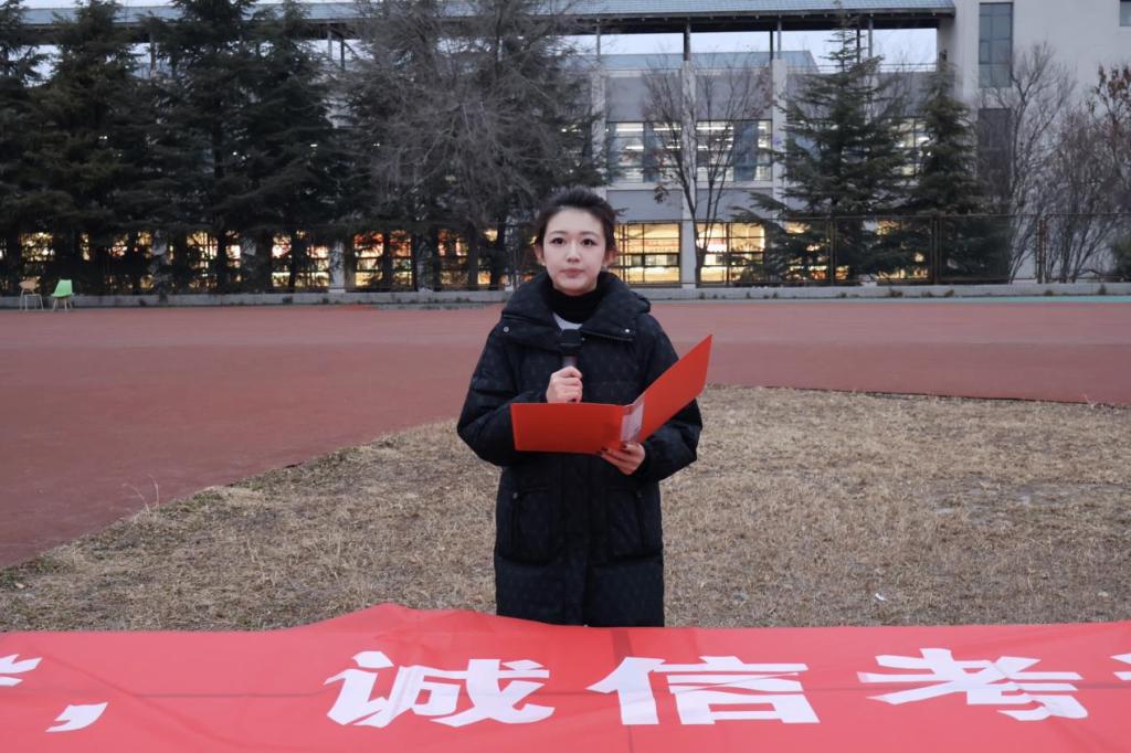 12月22日清晨,探花视频 在章丘校区举行“内诚于心,外信于人——践行诚信考试,涵养高尚品格”主题升旗仪式。探花视频 党委副书记张贞梅,团委书记张慧娟及2024、2025级全体本科生参加仪式。