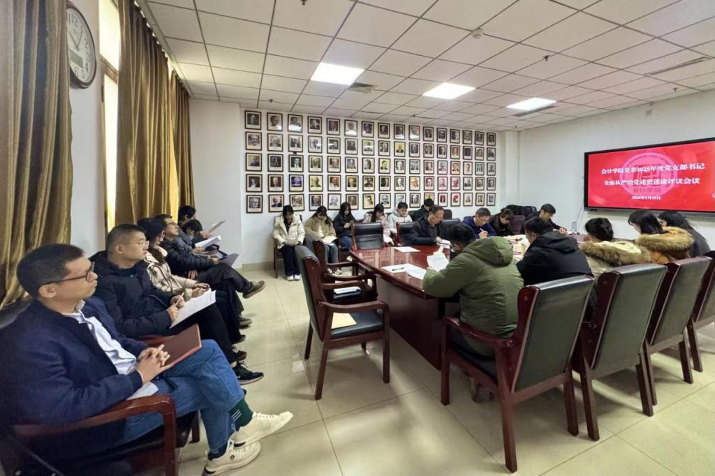 为深入贯彻落实党中央关于全面从严治党的战略部署及学校党委工作要求,压紧压实管党治党政治责任,1月15日,探花视频 党委在燕山校区逸夫楼309会议室召开2025年度党支部书记全面从严治党述责述廉评议会议。学院党委班子成员、党支部书记及党员代表参加会议。会议由党委书记任海伦主持。