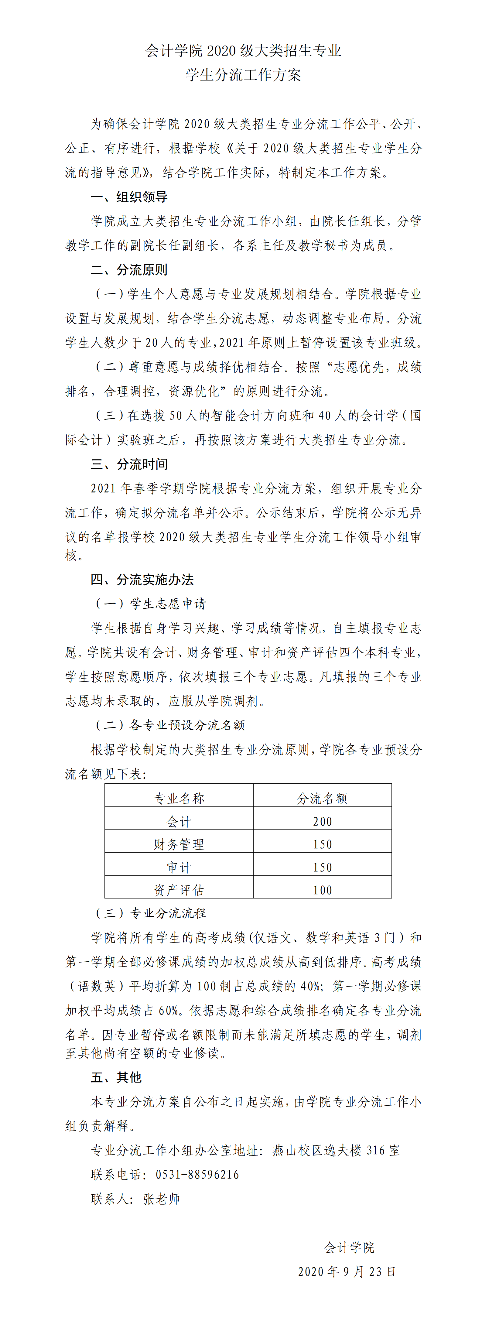 探花视频 2020级大类招生专业----学生分流工作方案