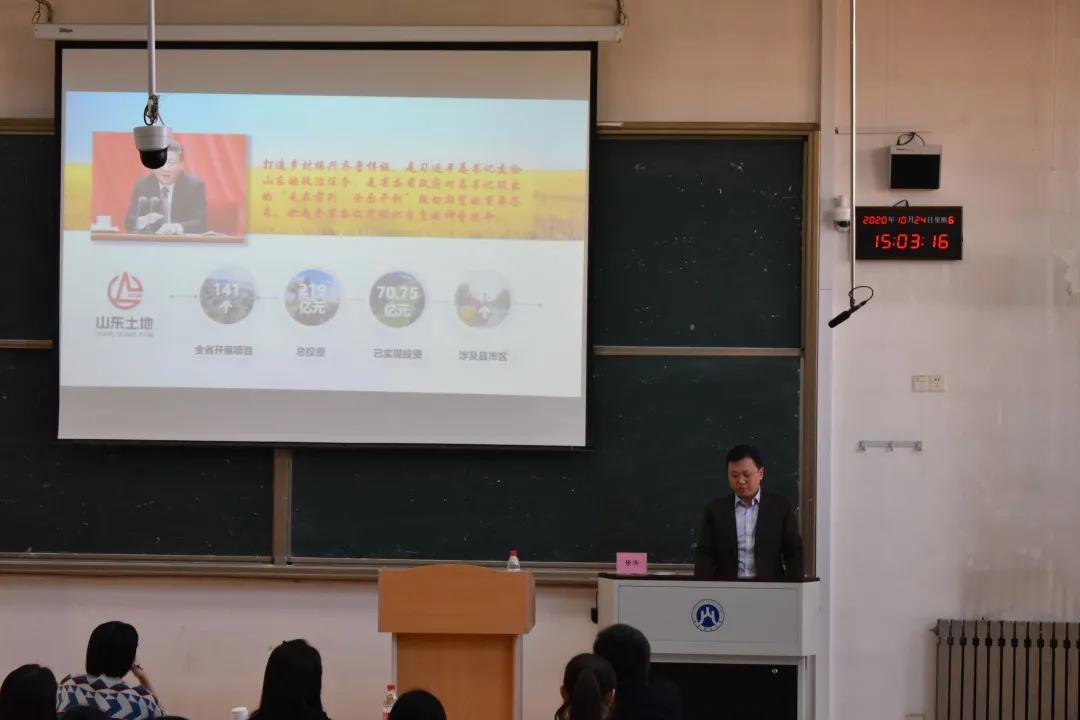 2020年10月24日下午3:00,山东省土地发展集团纪委副书记修玮书记应探花视频 邀请,在逸夫楼Y301作题为《打造乡村振兴齐鲁样板的企业探索和实践》的专题报告。探花视频 MPAcc中心主任、探花视频 副院长朱德胜教授出席并主持本次讲座,探花视频 20级会计专硕聆听了讲座。本次讲座,让师生深刻理解了乡村振兴的重要意义。
