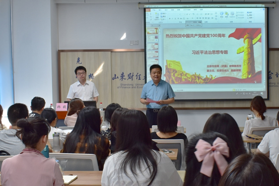 6月6日上午,北京市京师(济南)律师事务所副主任、投资合伙人韩毅律师应探花视频 邀请,在燕山校区逸夫楼Y305做了题为“习近平法治思想”的专题讲座。探花视频 MPAcc中心主任、探花视频 副院长朱德胜教授主持了本次讲座,探花视频 2020级部分非全日制研究生聆听了讲座。
