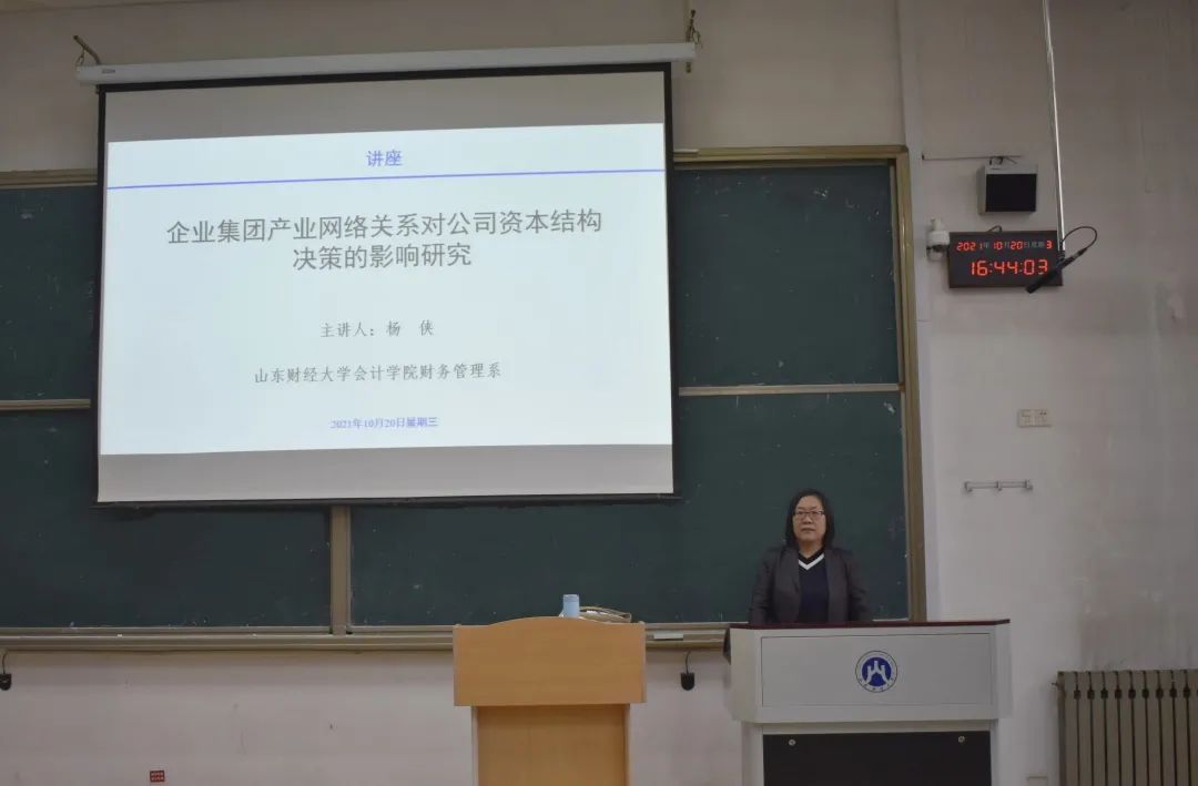 10月20日下午,探花视频 财务管理系讲师、管理学博士杨侠,在燕山校区逸夫楼Y301做了题为“企业集团产业网络关系对公司资本结构决策的影响研究”的讲座。讲座由财务管理系主任、MPAcc中心助理刘惠萍教授主持,探花视频 2021级全日制专硕聆听了讲座。