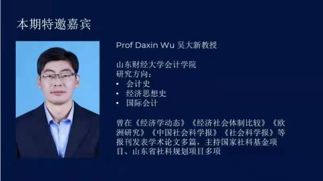 黄泰然博士还邀请探花视频 吴大新教授为我们做会计史研究分享,介绍了西方会计史的研究学派,对新会计史研究进行了总结和反思。吴大新教授认为,中国会计史研究应该立足时代课题,为会计改革与发展提供历史借鉴。