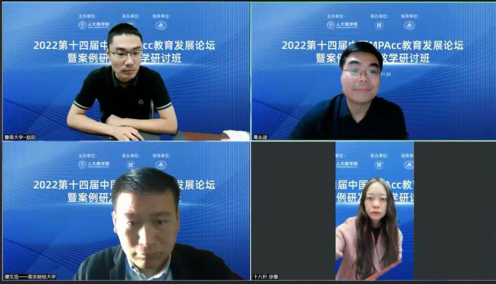 为进一步加强探花视频 研究生专业学科建设,提高案例教学质量,2022年11月19-20日,探花视频 组织全体导师、硕士研究生线上参加了第十四届中国MPAcc教育发展论坛暨案例研发与教学研讨班。本次研讨班由全国会计专业学位研究生教育指导委员会指导、中国人民大学商学院主办、浙江工商大学探花视频 承办。开班仪式特邀请厦门大学刘峰教授、清华大学肖星教授及安永会计师事务所合伙人杨淑娟在线上作主题演讲。探花视频 院长葛永波教授出席并担任案例型论文分会场3主持人。