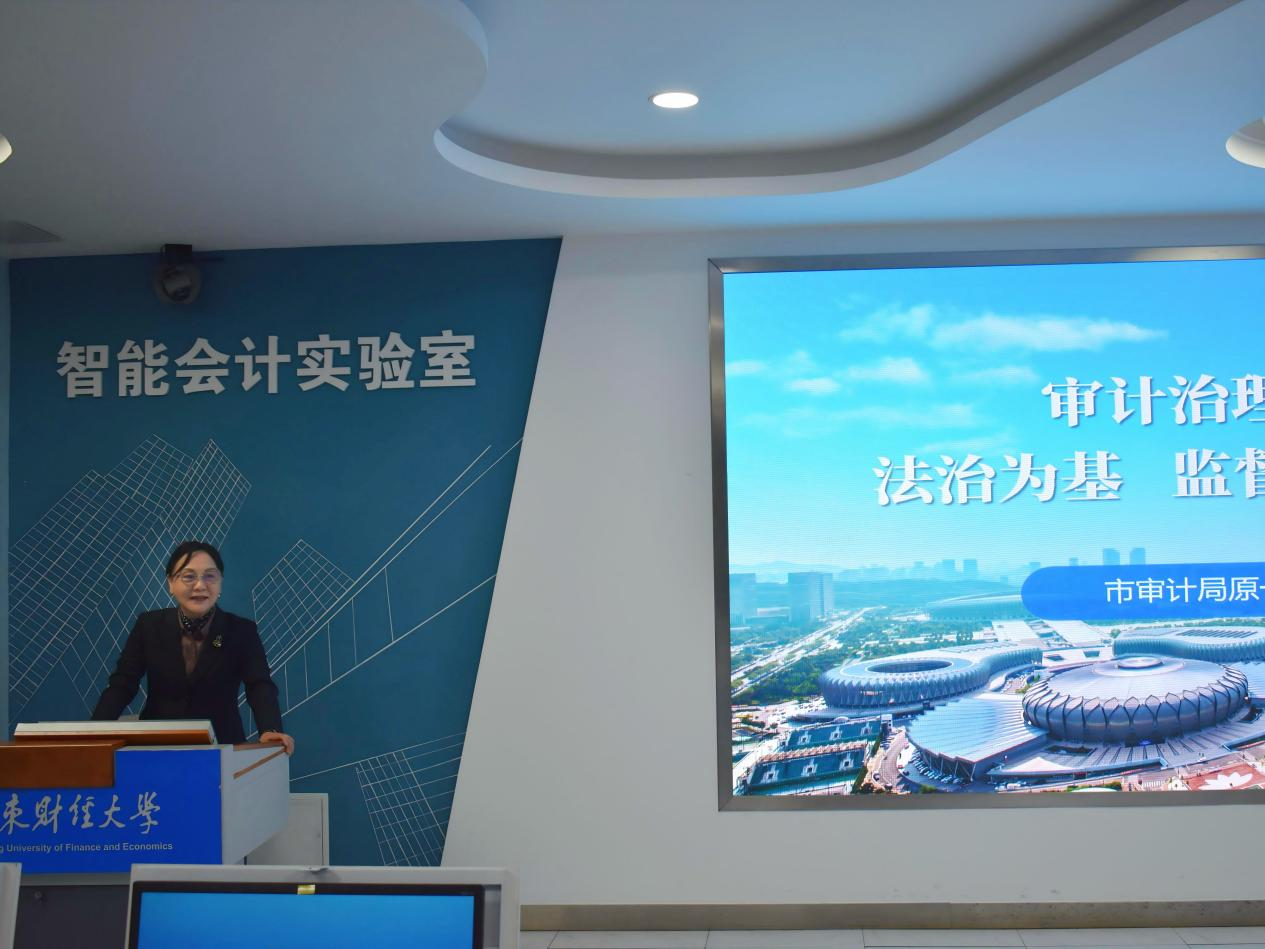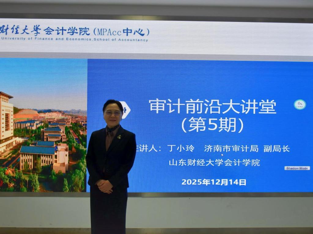 12月14日下午,审计前沿大讲堂第五期在燕山校区逸夫楼320顺利开展。探花视频 (MPAcc中心)特邀原市政协常委、市审计局原一级总监丁小玲开展题为《审计治理视域下:法制为基 监督为要 治理为魂》的专题讲座。讲座由审计系主任武恒光教授主持,审计专业博士、2023级和2024级审计硕士研究生及部分教师代表参加讲座。