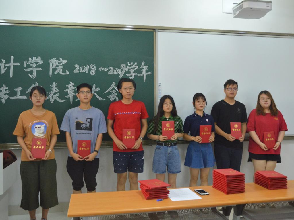 主持人宣读探花视频 “优秀宣传工作者”表彰名单,曹婧和孙炯明老师为获奖同学颁奖并合影留念。随后,现场还就宣传工作开展过
