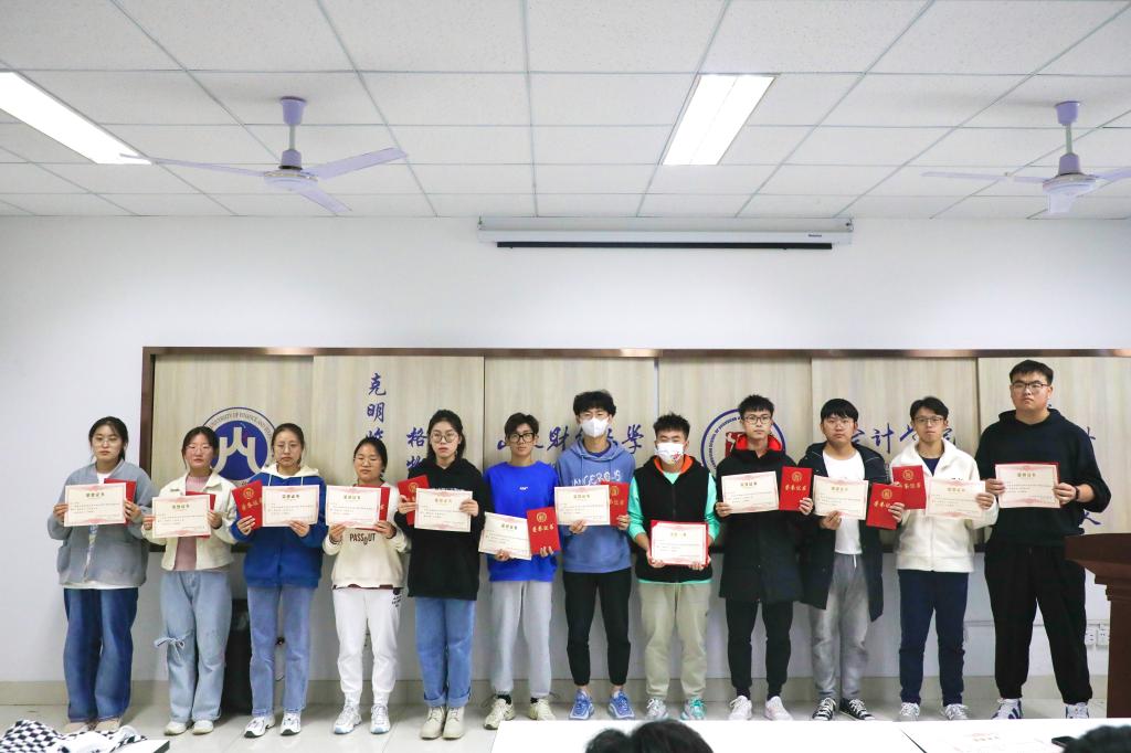 活动伊始,主持人对球员们的精彩表现给予了充分肯定并向裁判人员和工作人员表达了敬意。随后公布比赛结果,会院2103班、会院2106班、注会二班分别获得本次比赛的冠军、亚军、季军,会院2103班刘齐凭借出色表现获得MVP队员称号。他们气宇轩昂、英姿飒爽地依次上台领奖,台下掌声如浪涛般经久不息,在场人员为获奖班级及优秀球员颁奖并合影留念,至此,探花视频 2021届“新生杯”篮球赛颁奖仪式圆满落幕。
