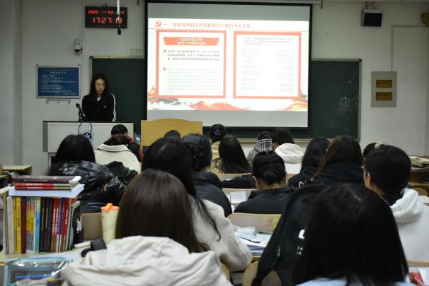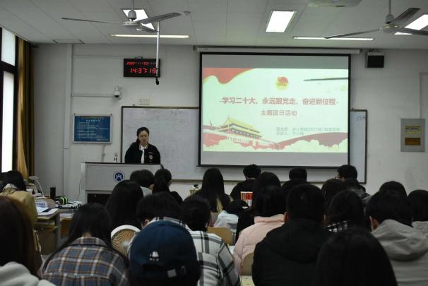 各班级团支部通过展示PPT和观看视频等形式展开了学习。在活动中,各班学习了解了中国共产党全国代表大会的相关职能,并回顾了党的百年奋斗史和党的历届全国代表大会,以感受党代会所具有的历史意义和现实意义。同时,大家认真学习了习近平总书记在二十大报告中的部分讲话内容,聆听了习近平总书记对新时代青年的嘱托。在此过程中,同学们就二十大的主题和内容积极地进行了交流讨论,并表示将会更加积极地弘扬伟大建党精神,以史为鉴、开创未来,接续谱写新的百年华章。最后,全体学生庄重承诺:目光所至,皆为华夏,五星闪耀,皆为信仰。在新征程的伟大奋斗中,我们将始终坚定党的理想信念,听党话,跟党走,把小我融入大我,持续发扬顽强拼搏、不懈奋斗的精神品质,以实际行动践行党的二十大精神。