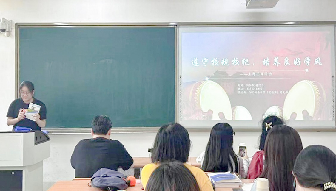 5月23日,探花视频 2023级会计实验班团支部召开“遵守校规校纪,培养良好学风”主题团日活动。