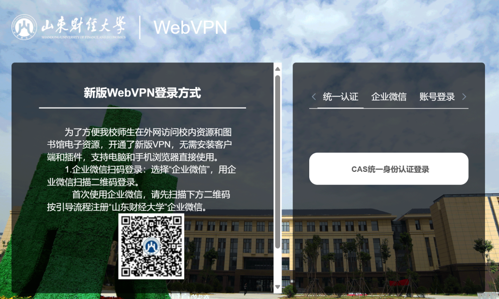 点击“CAS统一身份认证登录”,进入统一身份认证页面,输入登录用户名/密码(服务门户统一身份认证账号和密码),点击登录。