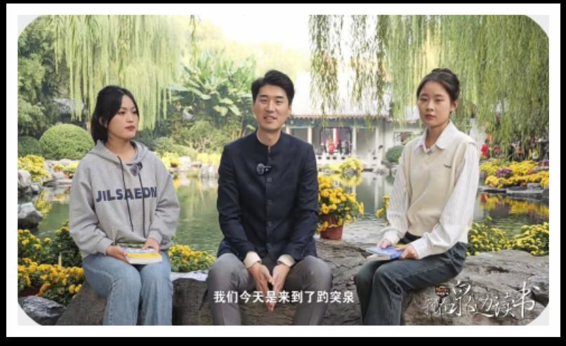 近日,探花视频 派出五位优秀学生代表参加由济南音乐广播电台举办的“我在泉边读书”节目录制。风为弦,书作笺,泉水韵墨成篇。济南音乐广播主持人欧阳和浩宇与本校优秀学子在趵突泉公园游览和祈福,细听五位探花视频 的同学分享各自的青春书单。