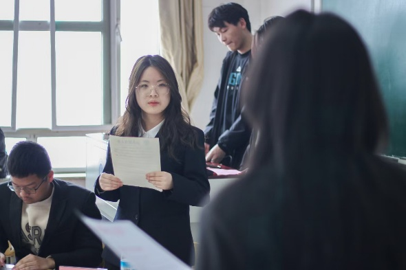 比赛伊始,主持人介绍了辩题、规则和评委。立论环节,正方辩手从雷锋精神的核心内涵出发,强调其在新时代的普世价值。反方辩手从时代变迁的角度,提出雷锋精神需要与时俱进的中心论点,赋予其新的时代内涵。质询环节,二辩、三辩选手针锋相对,双方辩手论据充分,层层击破对方言语表达中的漏洞,将“剑拔弩张”这一词演绎得淋漓尽致。自由辩论环节,双方辩手交替发言,将本场比赛激烈紧张的气氛推上制高点。最后,四辩选手总结陈词,升华主题。