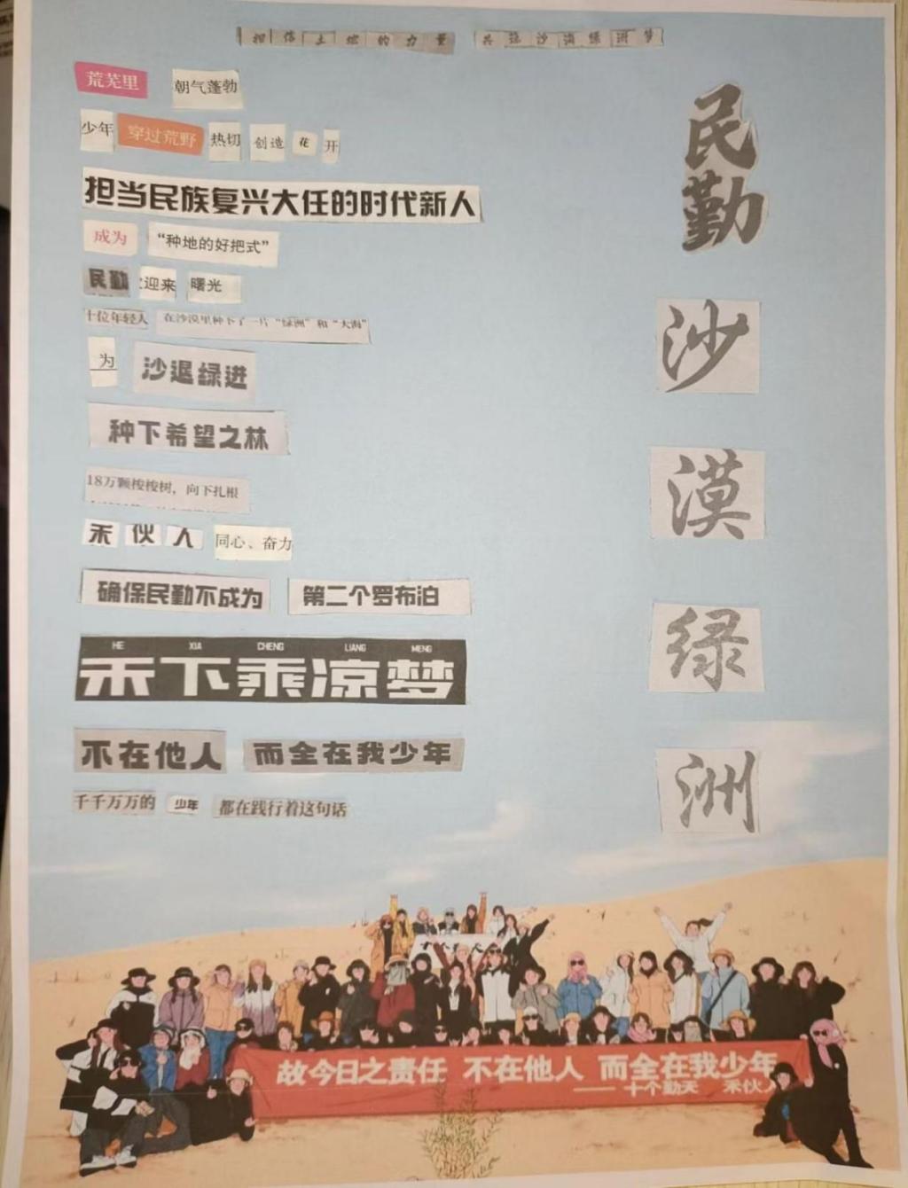 拼贴诗围绕“民勤沙漠绿洲 ”展开,展现了青年在沙漠治理中的担当。