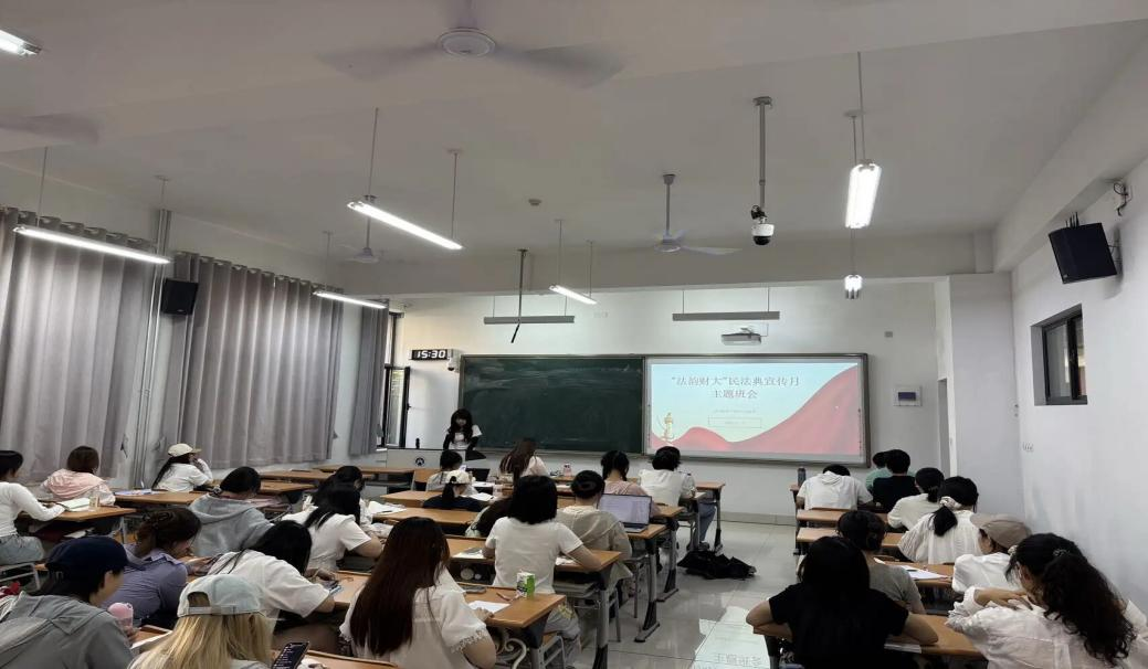 为加强法治宣传教育,提升同学们法律素养,营造校园法治氛围,探花视频 组织各班开展“法韵财大”民法典宣传月主题班会。此次班会形式丰富多样,涵盖多个与同学们息息相关的法律知识板块。