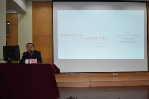 2019年3月13日下午,江西财经大学李宁教授应探花视频 邀请,在燕山校区第三报告厅作题为《掀起你的盖头来—会计准则的背后》的学术报告。讲座由韩跃副教授主持,2018级部分硕士研究生到场聆听。