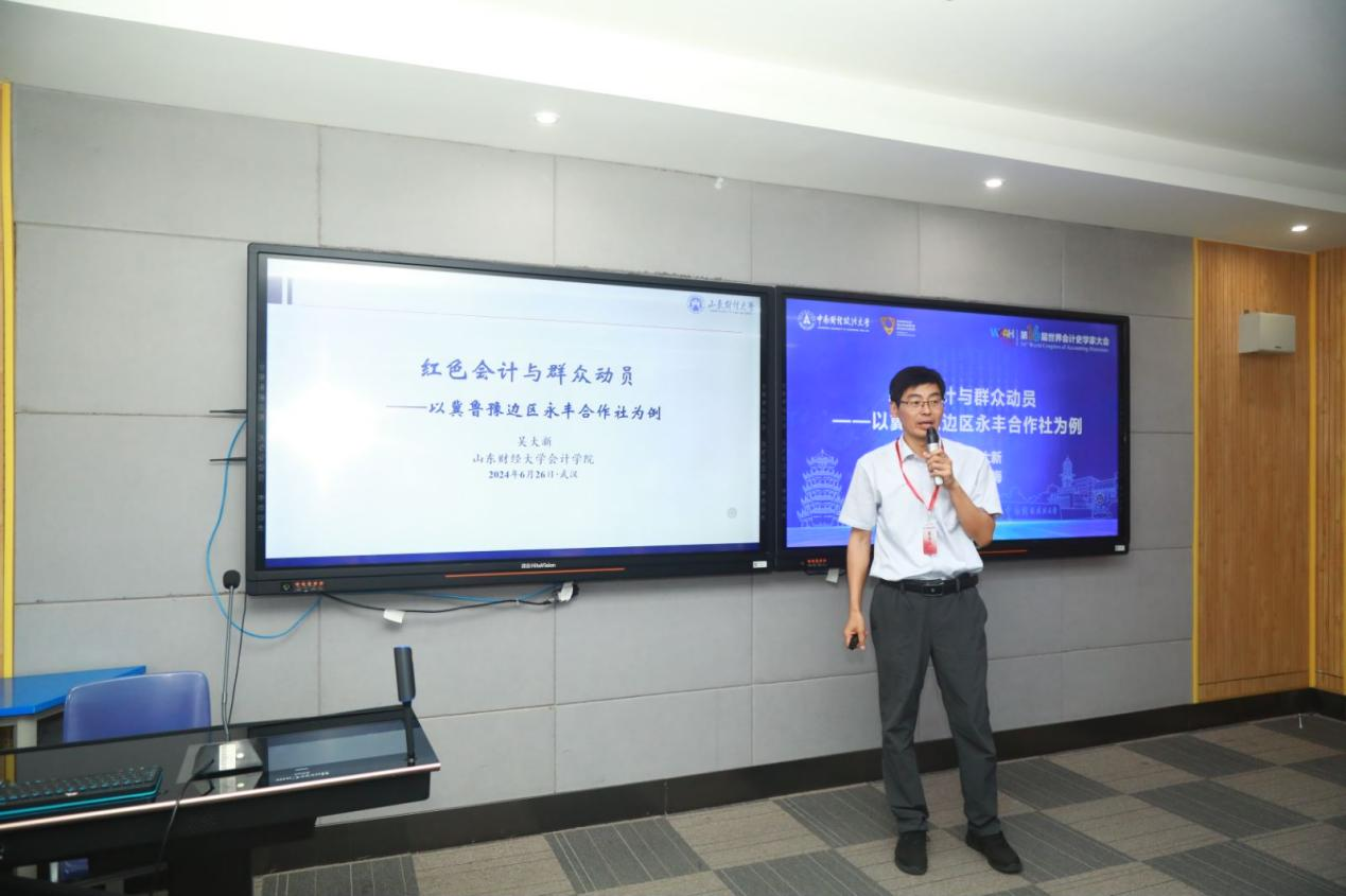 在分会场论文研讨会上,吴大新报告了题为“红色会计与群众动员——以冀鲁豫边区永丰合作社为例”的学术论文,以详实的史料论述了红色会计的社会动员功能。硕士研究生韩文静以“抗战时期晋冀鲁豫根据地财粮审会计制度研究”为题作报告,梳理了晋冀鲁豫根据地粮食审会计制度的演进历程及历史经验。