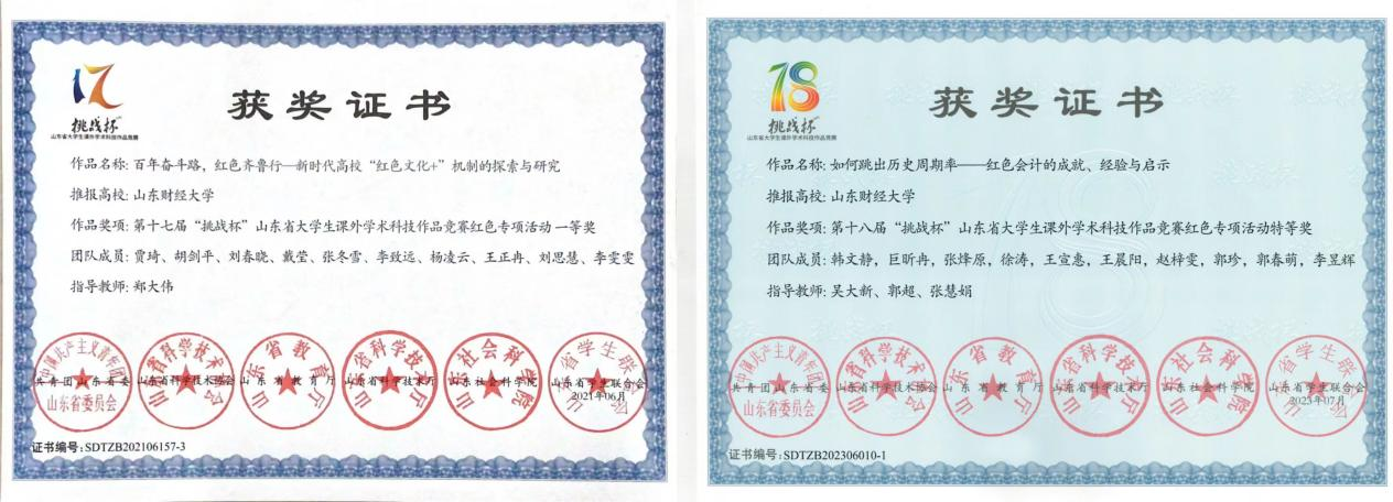 学院高度重视党建与业务的深度融合,先后获得高校党委(院系党组织)书记抓基层党建突破项目优秀成果、山东省教育系统优秀党务工作者、山东省教育系统共产党员先锋岗、全省首届高校党务工作者素质能力大赛三等奖和全省高校“精品党课”三等奖荣誉称号。在学生实践方面,红色会计学生团队也取得多项重要成果。学生队伍在第十七、十八届“挑战杯”全国大学生课外学术科技作品竞赛红色专项活动中先后获省级一等奖和特等奖;2022年,“山东省红色会计文化遗产的发掘、整理、保护与传承调研团队”入选《中国青年报》全国百佳团队,2023年,探花视频 井冈山精神志愿宣讲团入选年度千支全国大学生志愿宣讲团。