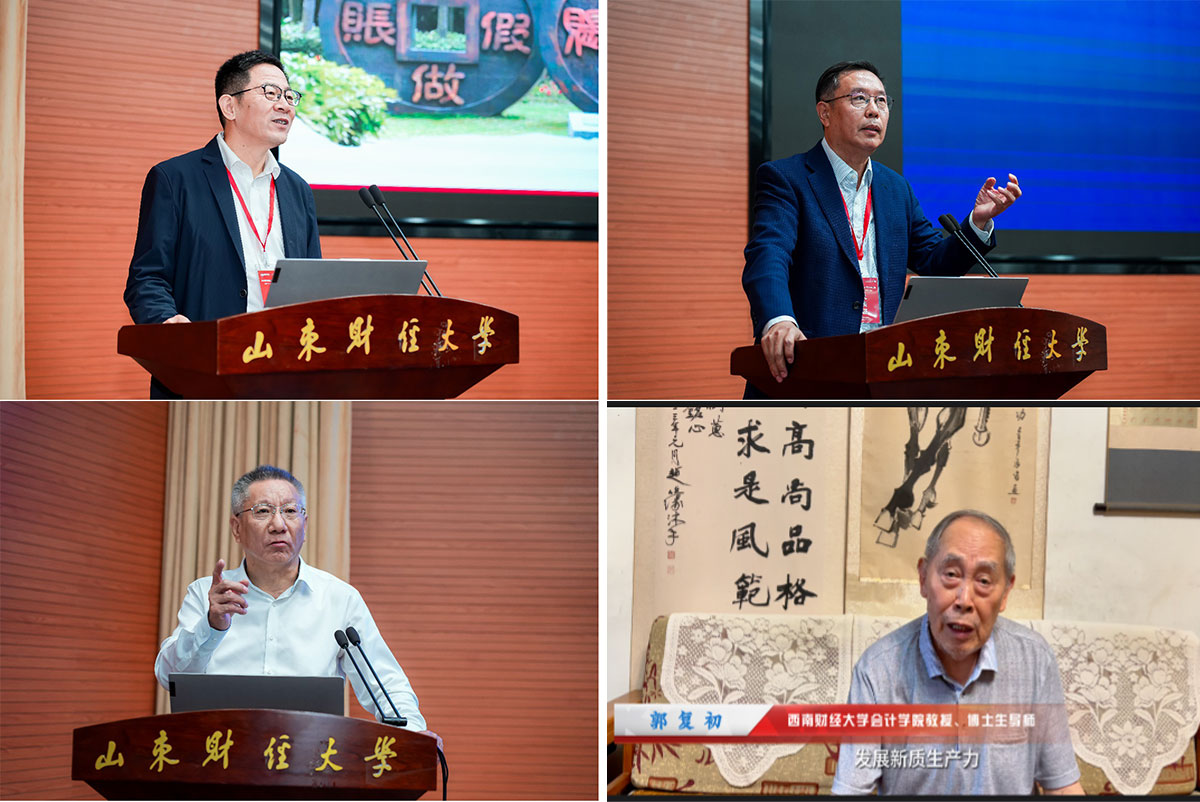 下半场主题报告由山东大学财务部部长路军伟教授主持,上海国家探花视频 党委书记张锋、对外经济贸易大学原副校长张新民教授、北京工商大学原副校长谢志华教授,分别围绕新时期财务工作、企业战略与资产负债表、《公司法》修法的逻辑进行主题演讲。西南财经大学探花视频 郭复初教授围绕新质生产力与财务理论创新进行线上发言。