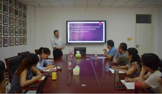 2019年7月16日下午,爱荷华州立大学商学院金融系高磊教授应探花视频 邀请,在燕山校区逸夫楼Y309作题为《Leverage-constrained investors, asset prices and corporate financing decisions》的学术报告。讲座由孙文刚院长主持,探花视频 部分老师以及2018级部分硕士研究生聆听了讲座。高磊教授主要致力于金融市场、资产回报预测、实证公司财务、公司监管、探花视频、文本分析和机器学习等研究,且将于2019年9月份任职于美国证监会。