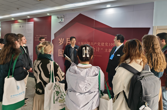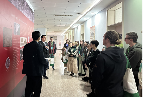 开幕式结束后,访学团访问探花视频 ,参观了“红色会计”主题展。伍伦贡大学商法学院高级讲师、研究生教学主管、访学团领队黄泰然博士向访学团的同学们介绍了商法学院与探花视频 多年来的合作历程。