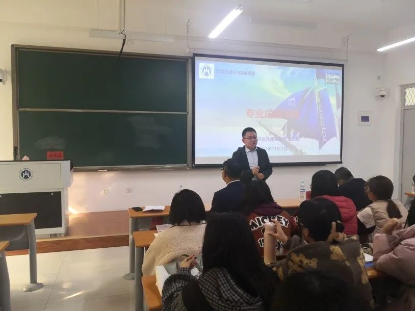 郝先经从“专业之源”、“行业之道”、“信念之翼”和“未来之路”四个方面展开讲座。首先介绍了学院与信永中和的校企合作,其次,介绍了注册会计师行业的起源、发展以及未来展望,然后,介绍了信永中和集团辉煌的历史和光明的发展前程,最后,作为学长希望同学们以梦为马,不负韶华,踏实做人,认真做事,期待同学们未来在注册会计师行业发光发热!