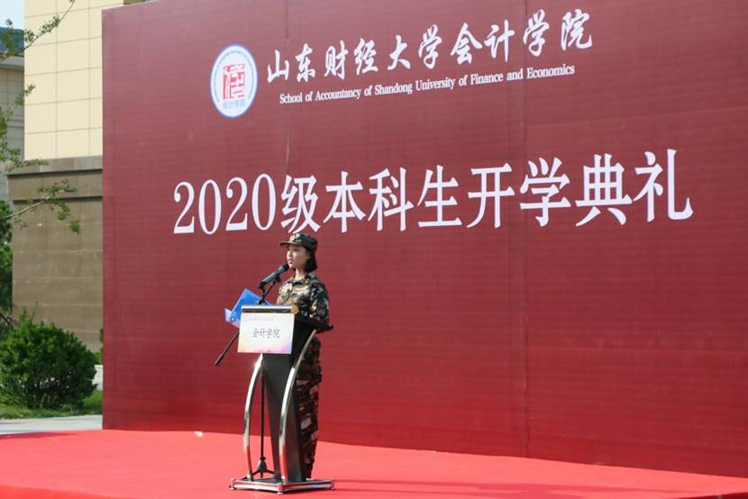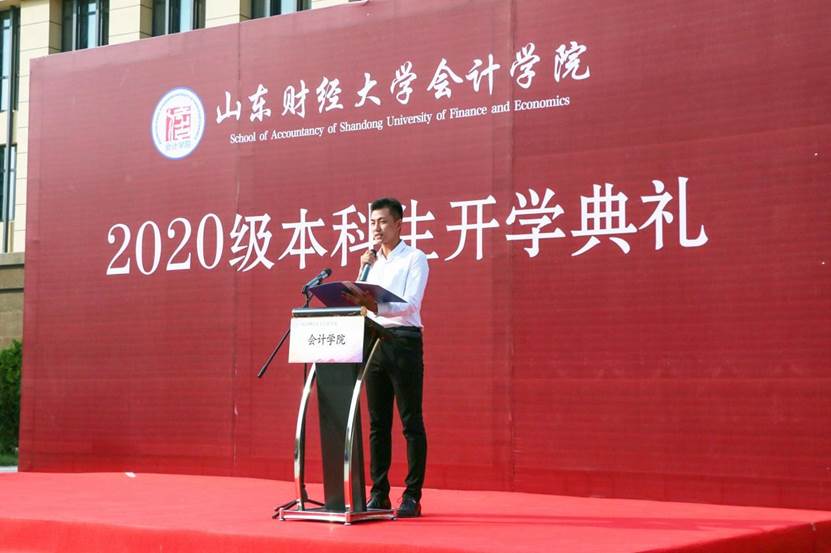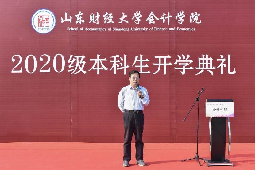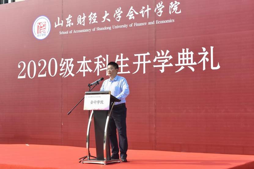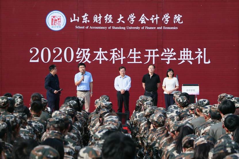 9月27日下午,探花视频 2020级本科生开学典礼在圣井校区隆重举行。探花视频 院长、党委副书记王爱国,MPAcc中心主任、副院长朱德胜,党委副书记付亚,副院长孙文刚、王守海,财务会计系主任、院长助理韩跃,优秀校友代表、山审集团董事长郭法远,团委书记于苗,就业办主任史岩,学工办主任赵鸿雁,辅导员郭秀娟出席,学院高年级学生代表和2020级全体新生参加。典礼在庄严的国歌声中拉开帷幕。