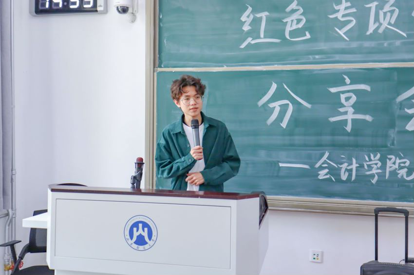 张宇暄介绍了“后疫情时代红色旅游资源内部控制有效性研究”团队的调研情况,就调研过程中线上会议效率低下的情况和原因展开深入剖析,并从及时听取公司内部周会、主动询问专业人员、做好团队内部分工与时间规划等从多个方面提出了解决方案,结合自身经历向大家分享经验。